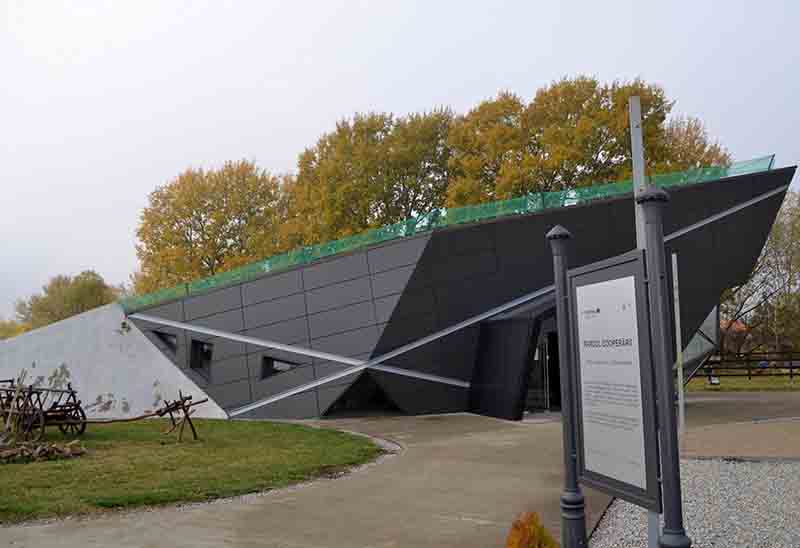 Prin elemente spectaculoase, Centru de vizitare permite vizitatorilor cunoaşterea împrejurimilor şi tradiţiilor oraşului Pecica, respectiv a Parcului Natural Lunca Mureşului. În interiorul clădirii, funcţiunile sunt reduse la un minim necesar: o sală de prezentare, o bucătărie, grupuri sanitare conform normelor în vigoare, un loc de depozitare şi un birou. Acoperişul clădirii este o terasă înierbată, care înlocuieşte spaţiul verde ocupat de clădire. Vizitatorii pot vedea toată ferma şi pot observa comportamentul bivolilor în propriul lor mediu, fără a fi deranjaţi.