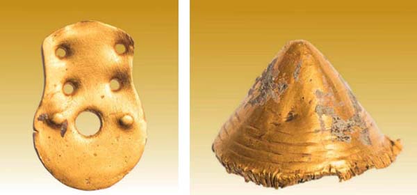 De la Pecica provin o podoabă din aur și un pandantiv din aur, descoperite în cadrul celui mai mare cimitir eneolitic timpuriu şi mijlociu din arealul intra-carpatic, cel de la situl Pecica „Est” (aproximativ 4300-4100 BC). Pandantivul din aur a fost descoperit în mormântul unei femei, despre care arheologii au stabilit că făcea parte din elita socială a comunităţii respective. Podoaba de aur, de formă conică, a aparținut unui bărbat, a cărui mormânt a conținut un inventar funerar bogat format.