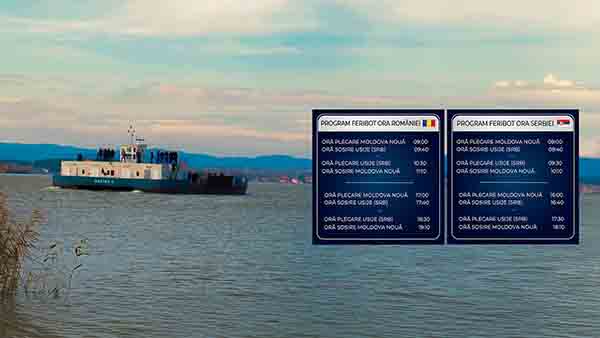 Turismul transfrontalier România-Serbia va fi reluat. Începând din 22 iulie 2025, se reiau cursele cu bacul dinspre România spre Republica Serbia și retur, cu plecare din Moldova Nouă către Usije.