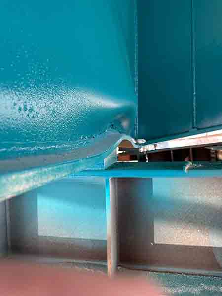 Cele două imagini sunt poze făcute de sub pod, asupra tablierului metalic. Orice om poate să vadă cu ochiul liber cât de îndoite sunt grinzile de sub pod. Sunt voalări ale structurii podului de te crucești. Nu sunt voalări de ordinul milimetrilor, ci de ordinul centimetrilor – ele sunt uriașe pentru o astfel de structură.